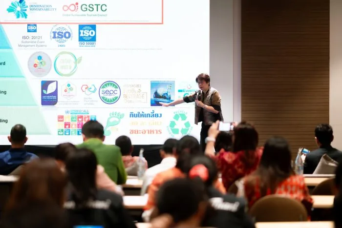 “ประเทศไทยกำลังยกระดับประเด็นความยั่งยืนจากความตั้งใจไปสู่ความสำเร็จที่เป็นรูปธรรม โดยขับเคลื่อนความมุ่งมั่นในระยะยาวให้เป็นผลลัพธ์ที่วัดผลได้จริง ทั้งนี้ จากการต่อยอดความมุ่งมั่นของทีเส็บที่ให้ความสำคัญกับการเติบโตที่เป็นมิตรต่อสิ่งแวดล้อมและโครงการเชิงรุกด้านความยั่งยืนที่ได้ดำเนินมาอย่างต่อเนื่อง เราจึงมีความพร้อมอย่างเต็มที่ในการสนับสนุนให้หน่วยงานและองค์กรต่าง ๆ สามารถจัดงานที่เป็นมิตรกับสิ่งแวดล้อมและมีความยั่งยืน โดยทีเส็บไม่ได้เป็นเพียงผู้รับผิดชอบเท่านั้น แต่ได้บูรณาการความยั่งยืนเข้าสู่ทุกมิติของอุตสาหกรรมไมซ์ มีทิศทางเชิงกลยุทธ์ที่เสริมสร้างขีดความสามารถในการแข่งขันของประเทศไทย และตอกย้ำจุดยืนในการเป็นหนึ่งในจุดหมายปลายทางชั้นนำด้านไมซ์ที่ตอบโจทย์ความต้องการของธุรกิจที่ให้ความสำคัญกับความยั่งยืนอีกด้วย”